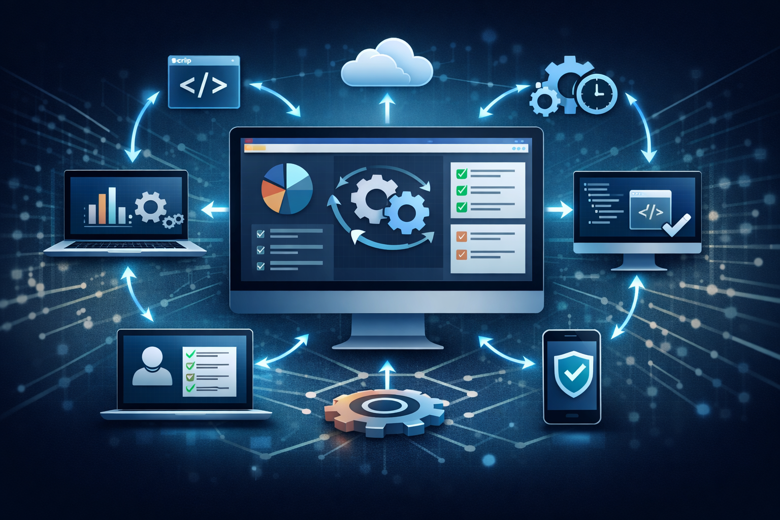 - Update & Configuration Tracking – Monitor software updates and configuration compliance, with automation to keep systems on track.